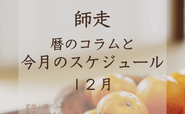 NEW 2025年12月1日◆募集中の薬膳レッスンyuzuha-yakuzen [師走]時の歩み◆12月のくらしの暦 ————- 7日 大雪(二十四節気)13日 正月事始め・煤払い22日 冬至(二十四節気)25日 クリスマス31日 大晦日・大祓い  […]