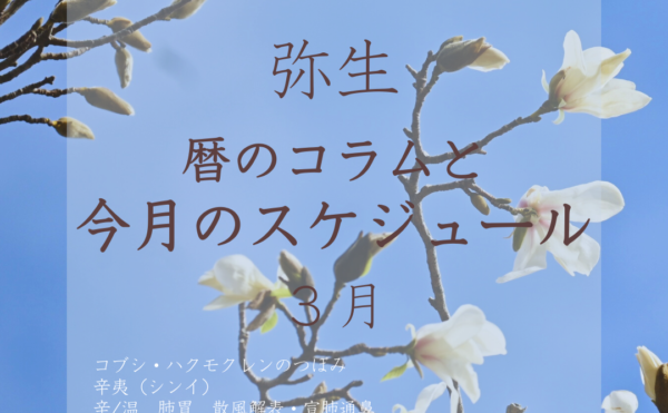 NEW 2026年3月1日◆募集中の薬膳レッスンyuzuha-yakuzen [弥生]芽吹き◆ 3月のくらしの暦 ————- 3日 雛祭り 5日 啓蟄(二十四節気)17日 彼岸入り20日 春分(二十四節気)————& […]